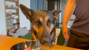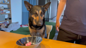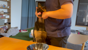 歯みがき後なのに、ささみをもらってしまう維桜さんでした・・・。