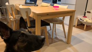 テーブルのコーンを見つけた時、パクっと食べなかったのはどうしてなのでしょう??😅 もしかして食べたら怒られると思ったのかな?😅💦 食べてもいいよ~って時は食べず、待てチャレンジではソッコー食べてしまう維桜さん・・・アマノジャクでした🐶
