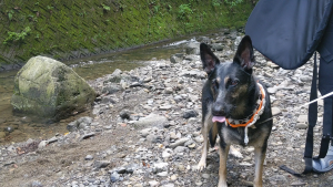 今朝、この夏最後の川遊びへ出かけたのですが、そこで出会ったシェパードのオスに維桜が襲われてしまいました。