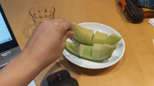 で、オヤジは今、ブログを書きながらメロンを食べております😊