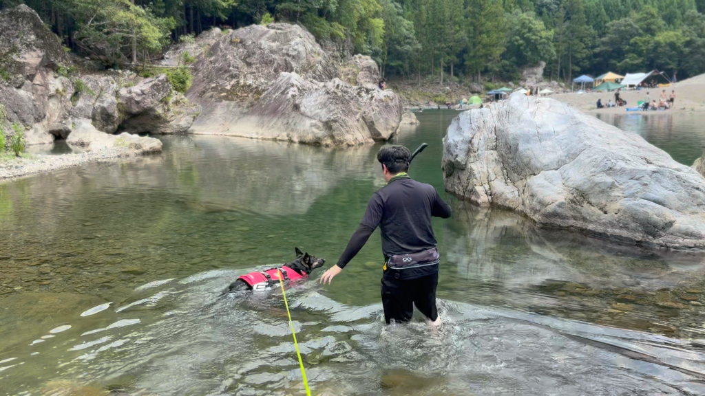 こちらの宮川は、とても流れが穏やかなのでワンちゃんや子供さんの川遊びにも最適なんだとか。