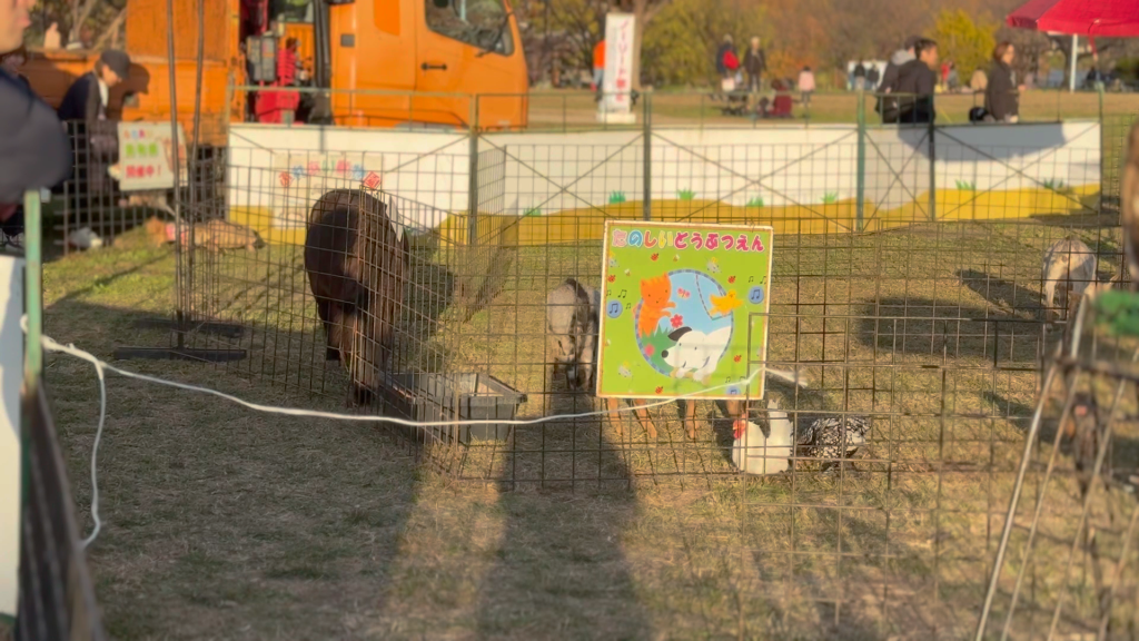 維桜さんと公園を散歩していると、移動動物園を発見しました!