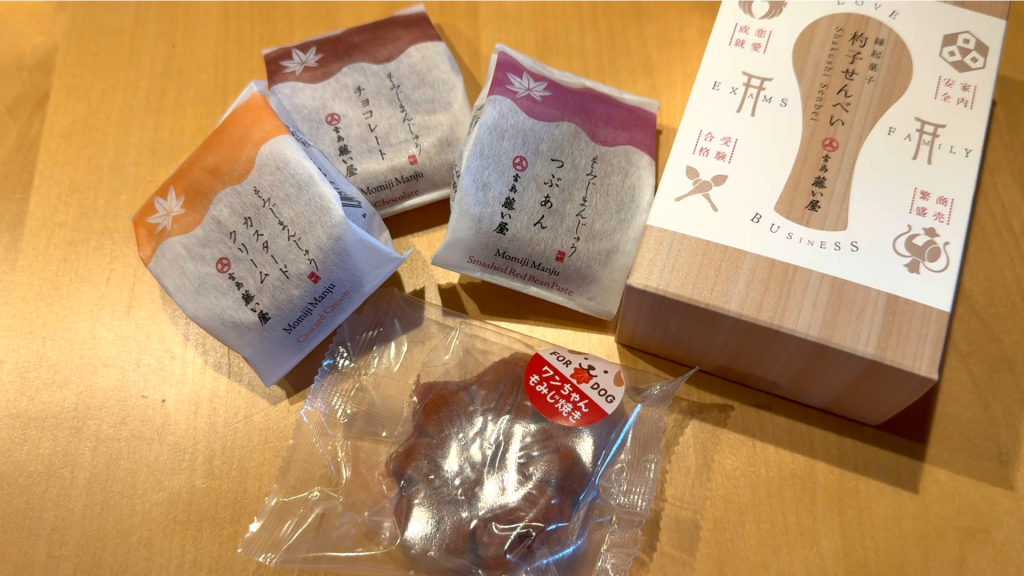 広島のお土産にもらったワンちゃんもみじ焼き!見た目も味ももみじ饅頭で、愛犬もかぶりつくおいしさです