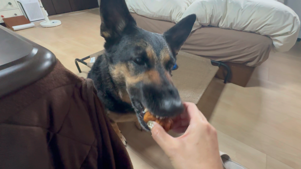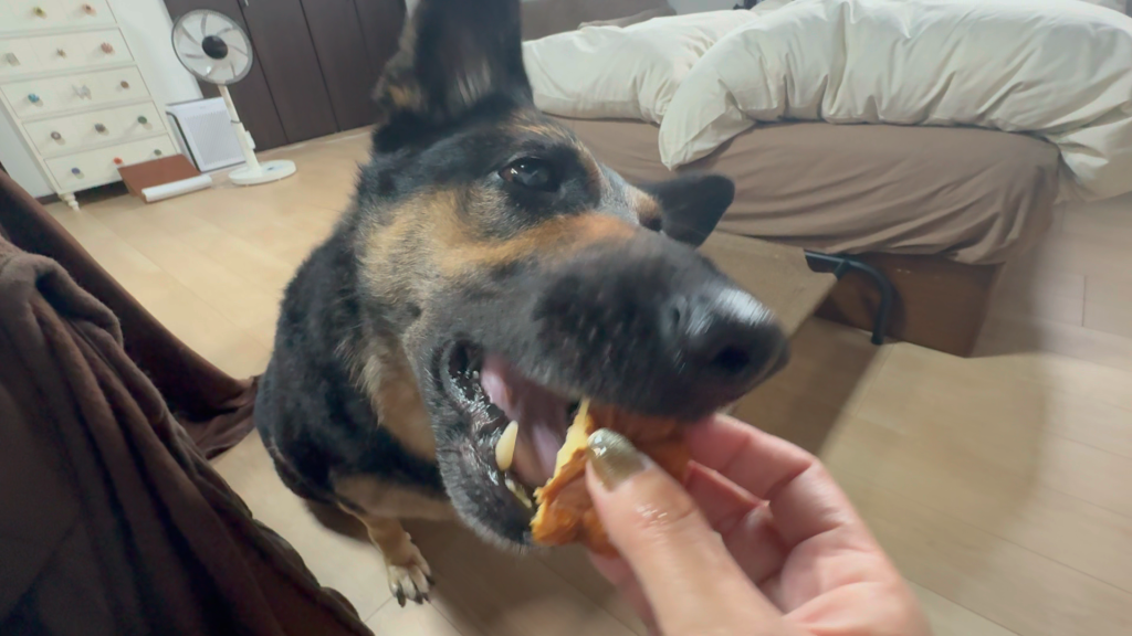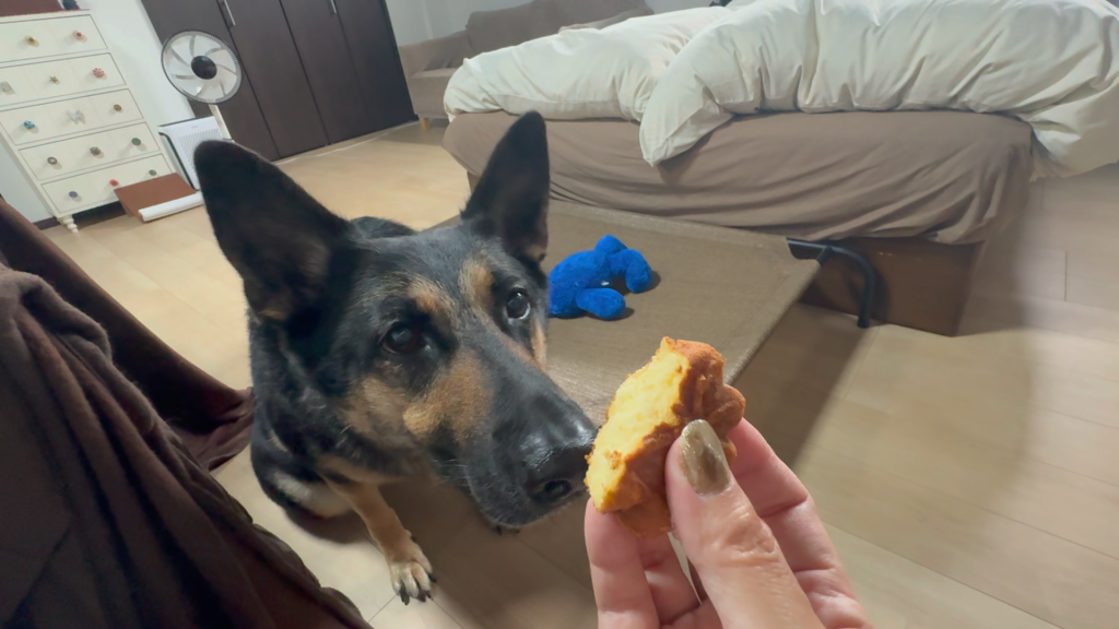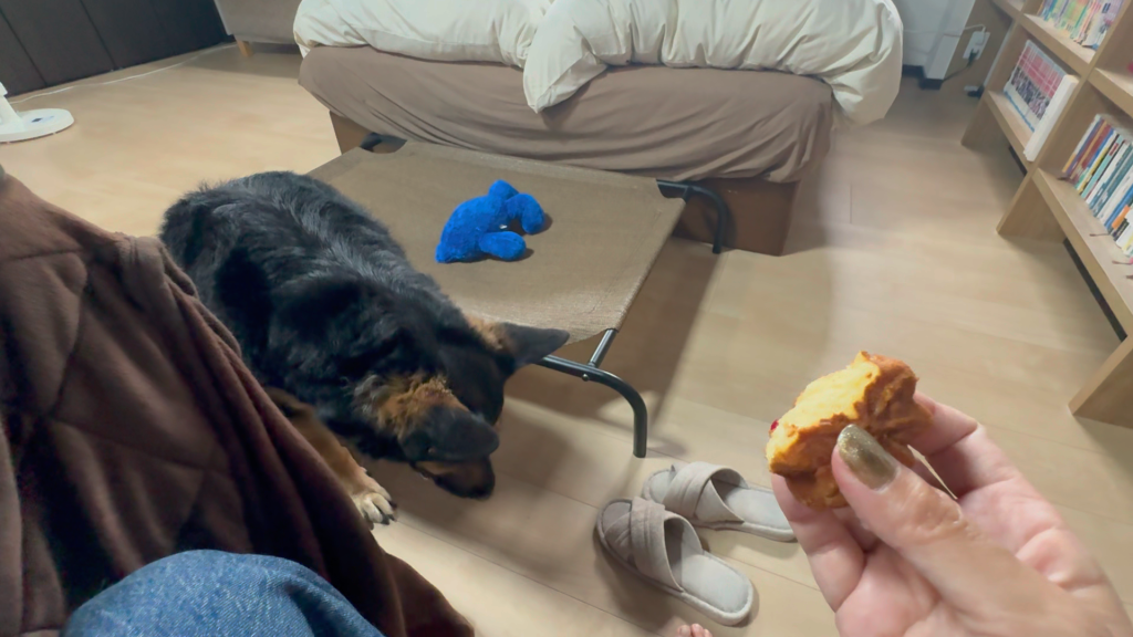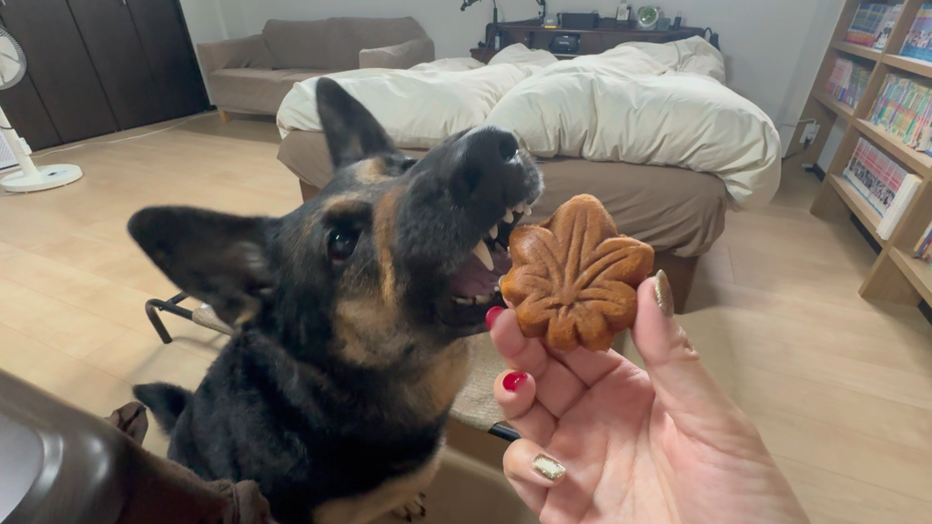 ・・・というわけで、本日のおやつはもみじ饅頭(ワンちゃんもみじ焼き)と、