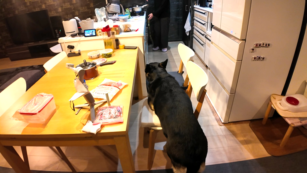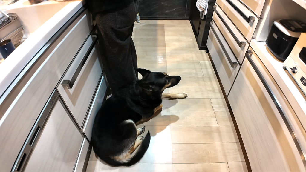 私(飼い主♀)がご飯の支度をしている足元にくっついているんです。