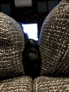 少し見にくいのですが、ソファーの背もたれ部分に維桜さんの鹿の角が乗っています。