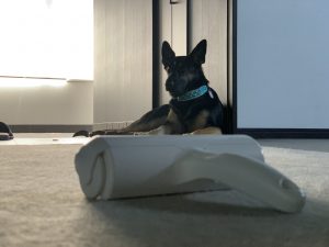飼い主♀、この時は、鹿角があることに全然気が付かなかったのですが、夜になってそれに気づき、おもちゃ箱へしまおうとすると・・・!