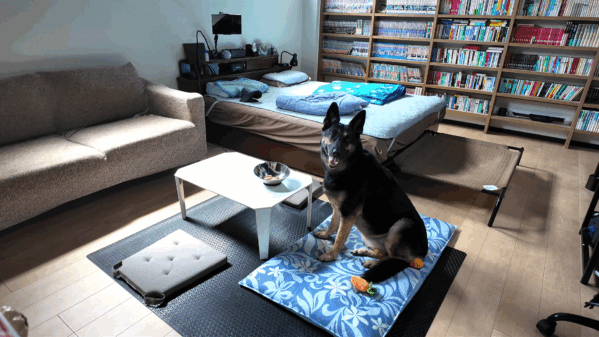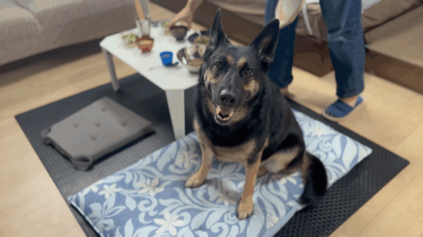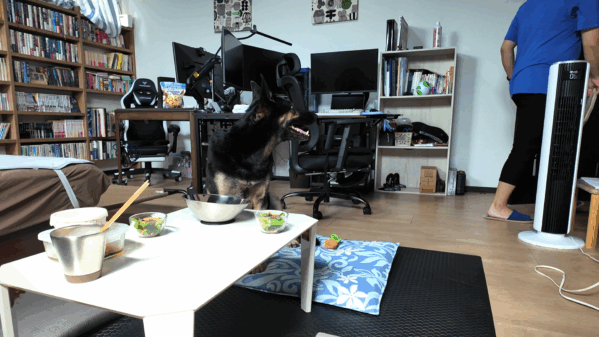 果たして、オヤジと私(飼い主♀)がお昼ごはんを運んでくる間、