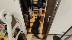 出かけるので、オヤジがクローゼットへ着替えに行ったところ・・・。