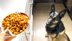 散歩から帰った時テーブルの上に大好物があったら、愛犬は気づくのか?