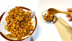 鶏胸肉を買うと付いている皮を、カリカリになるまで焼いたものなんですが・・・、