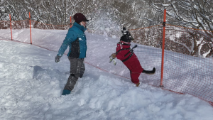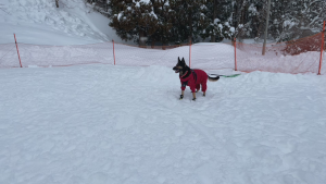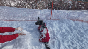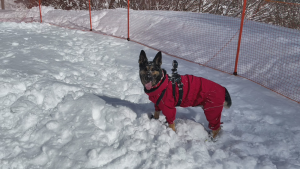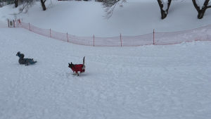 ちょうど明け方まで雪が降っていたようで、ドッグランには新雪が降り積もっていました。