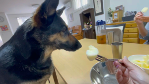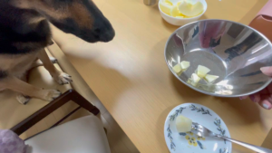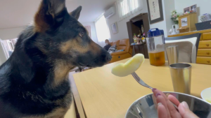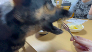 好きな食べ物にかぶりついて離れないワンちゃんの動画をたまに見ますが、