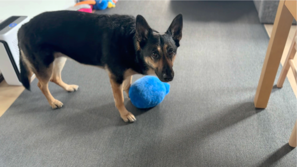 そんなに好きなラグビーボールなのに、おやつがあったら見えなくなってるじゃん!