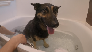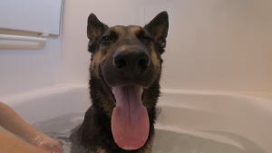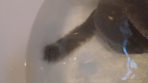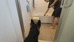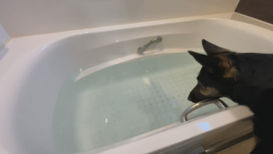 実家で朝風呂しようと思って入浴剤入れたら、愛犬が浴槽でとろけてました