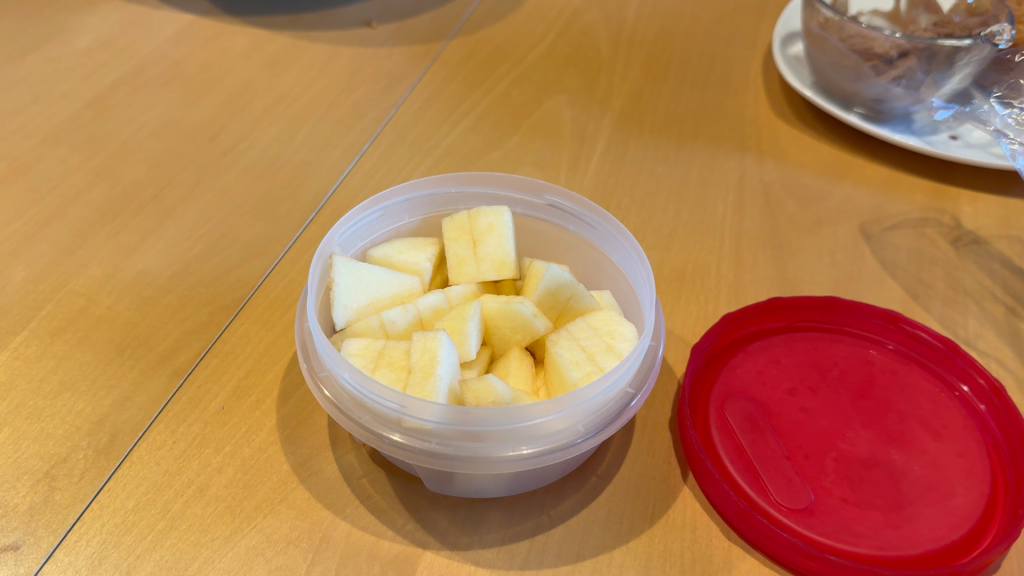 でも、なんだかちょっと申し訳ないので、りんごを切りました。