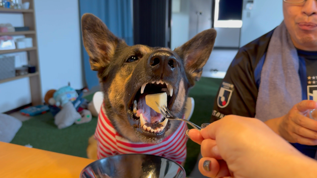 今度は大口を開けてりんごを頬張る維桜さんでした。