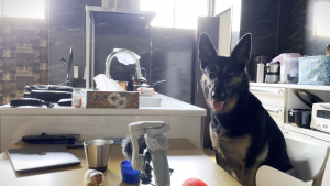 維桜さんが、普段は飼い主♀が座っている椅子を陣取って、オヤジと