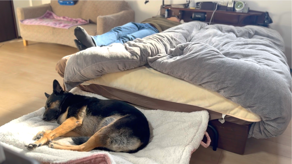 こっちは元旦の朝から動画編集してんのに、なに快適に寝とんじゃー!