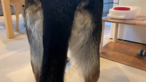 飼い主♀的には、見た感じ、しっぽの毛が最有力候補かと・・・?