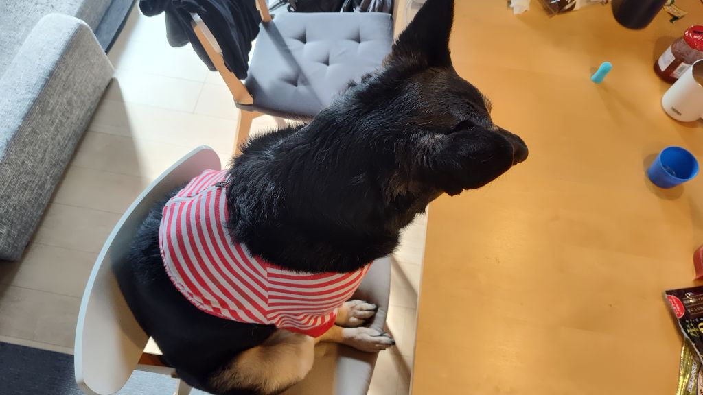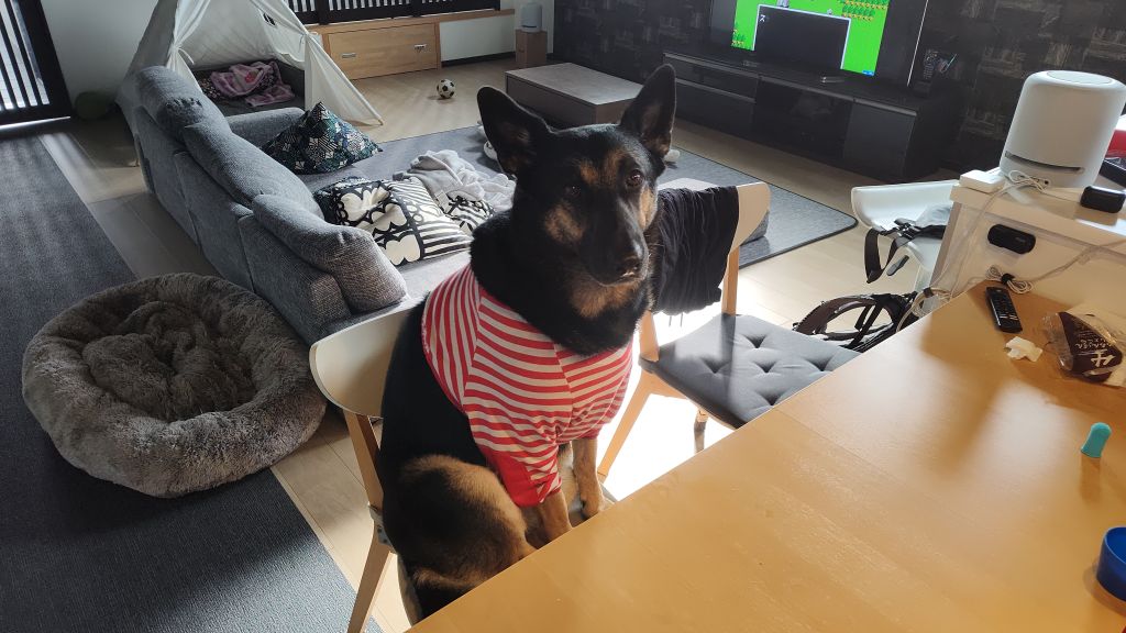 食卓に座っていれば、なにかもらえると期待満々の維桜さん。