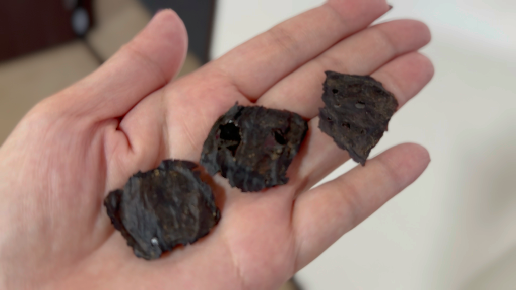 薄くスライスしたレバーのドライタイプなので、手も汚れずあげやすいですね。
