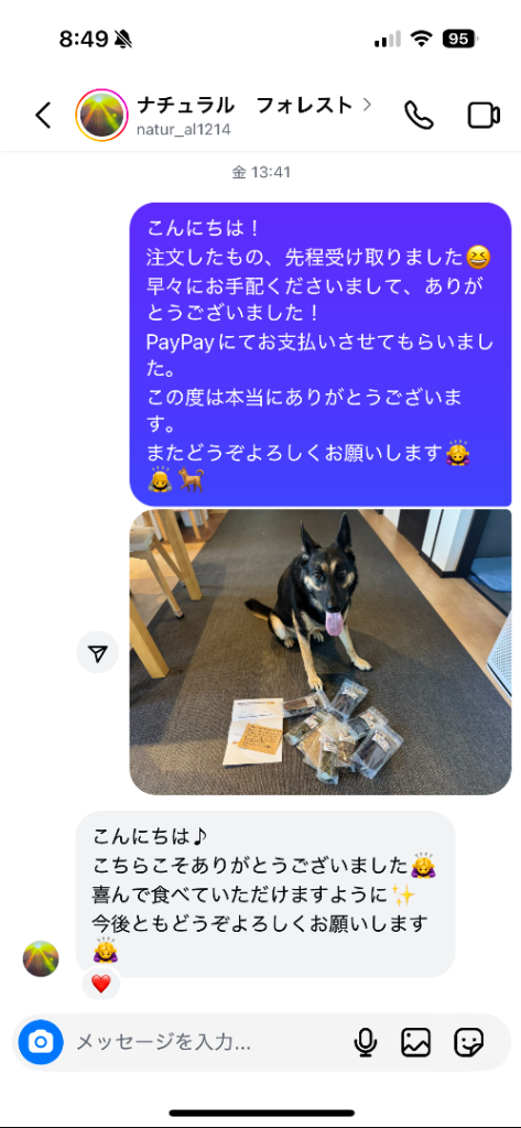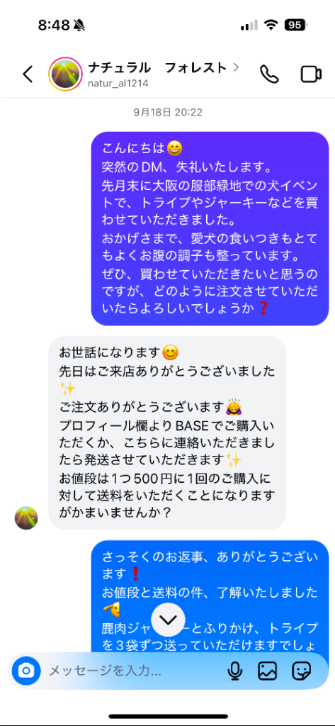 インスタグラムのDMで連絡させてもらったのですが、すぐに返信が!