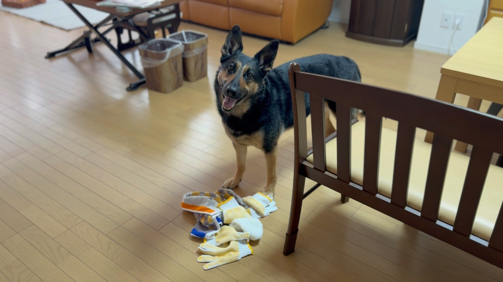 ・・・って、いつの間にか違う部屋から軍手まで持ってきてる!