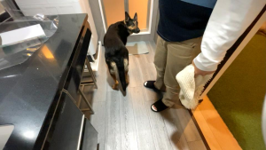 ・・・あ、早くも維桜さん、新しい足ふきマットに気づいたようです。