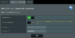 Samba共有を選択して、「共有を有効にする」を「ON」にします。