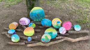 カタツムリの甲羅に、この時期ならではの風景が描かれています。