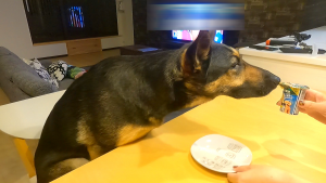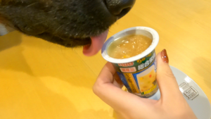 大型犬なのできっと一口でパクッと食べちゃうのでは!?という期待をしていたのですが、食べるというより舐める、飲む、という表現の方が近い維桜さんでした。