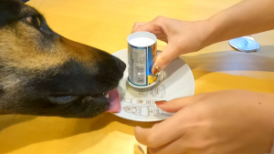 ちゅ~るタワーなるおやつをあげたら食べずに飲んだ犬