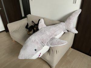 そんなにサメを気に入ってもらえたんなら、遠方まで買いに行った甲斐があったわー!
