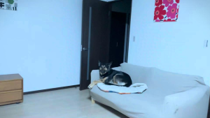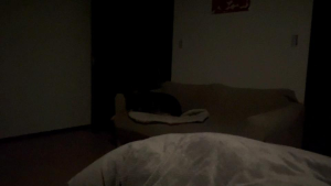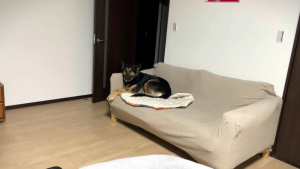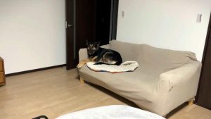 だんだんと暖かくなってきたので、夜中のうちに自分のベッドに移って寝るようになりました。
