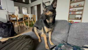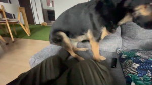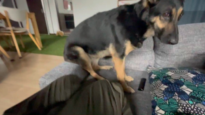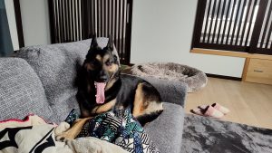 いつもオヤジが座っているソファのヒジ掛けを愛犬が便座代わりに座るんですが・・・w