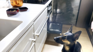 我が家の電子レンジは、コンロの下にあるので、維桜さんがついついのぞける位置です。