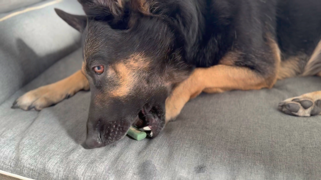 Lサイズの大型犬用になると食べ終わるまでにもっと時間をかけて噛んでくれそう。