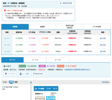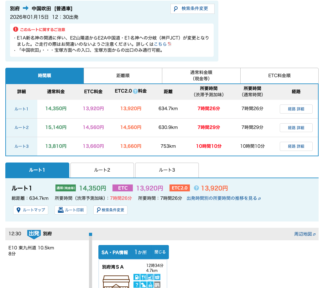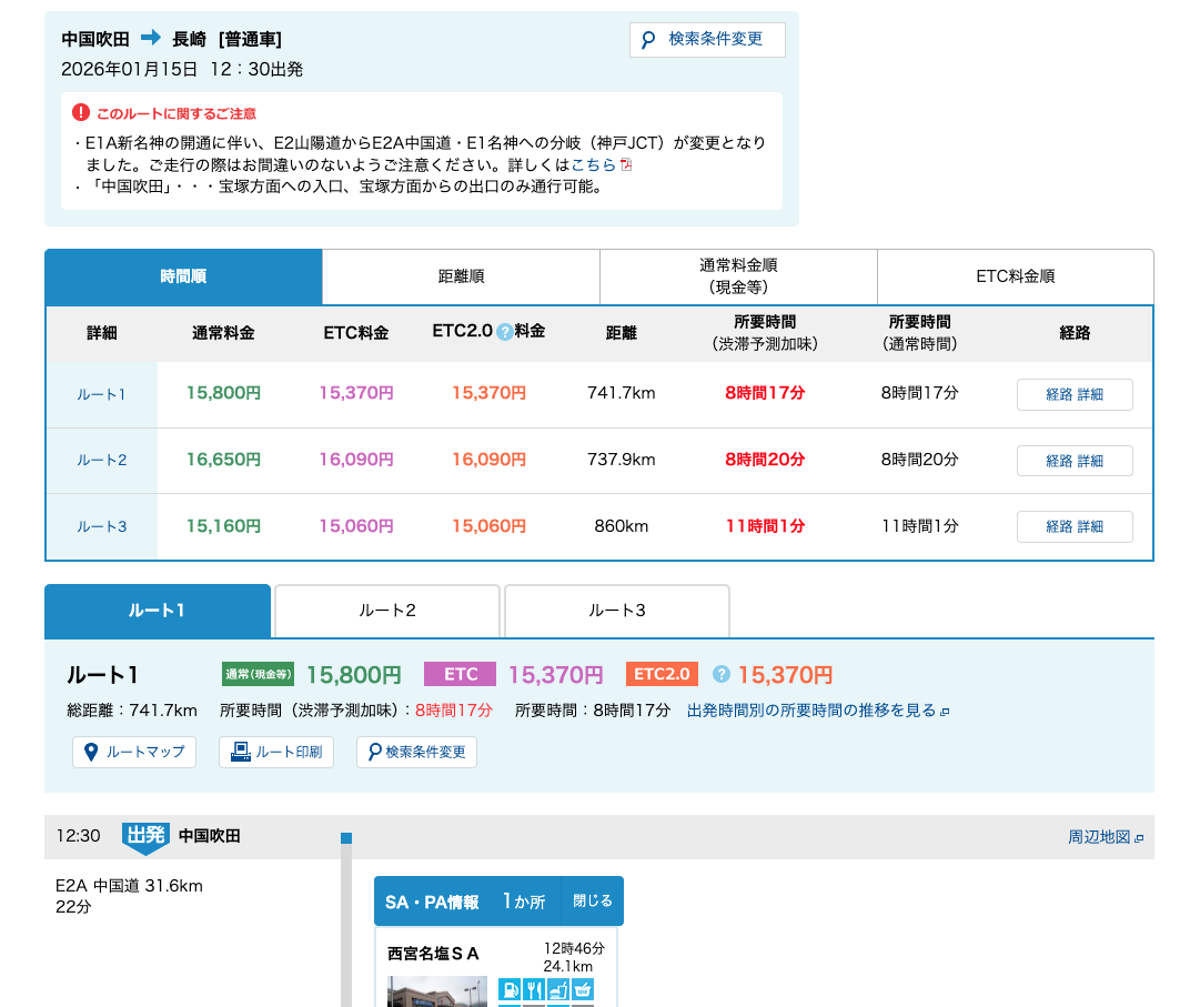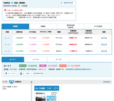 事前にネットで高速料金をシミュレーションしてみたところ、