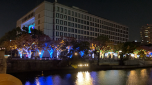 大阪のモニュメントと、とっても大きなイルミネーションファサードが!