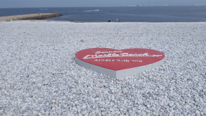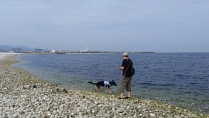 こちらの海岸は、「マーブルビーチ」という名称だそうで、その名の通り、砂浜ならぬ石浜です。