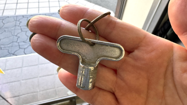 水を出すには、“共用水栓カギ”と呼ばれる、こういうカギが必要です👇