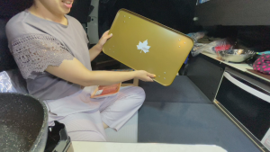 これね、先月旅行した時に車中飯で活躍したテーブルなんですが、