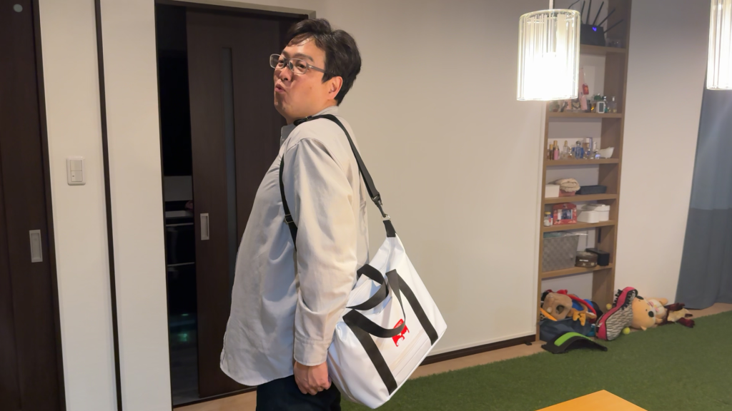 ちなみに、このバッグは防炎・防水・防汚素材でできているので、めちゃ丈夫〜!