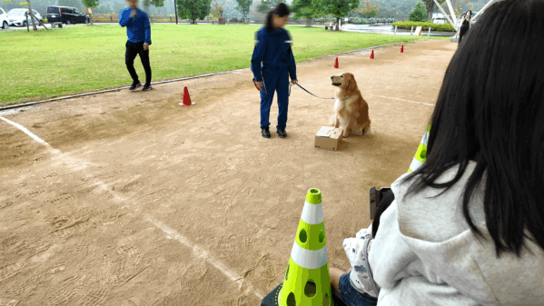 演技終了後、訓練士さんにごあいさつに行きました。