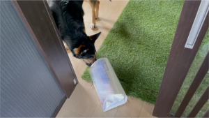 「うんしょ、うんしょ・・・このテープを剥がしてっと・・・」