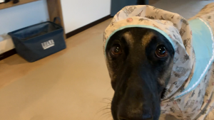 というわけで、犬生初のレインコートを体験した維桜さんでした。