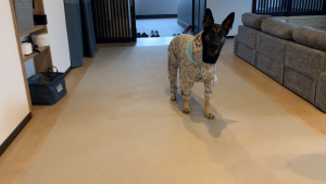 はい、世にも恐ろしいリビングマットでお漏らしする2歳のジャーマンシェパードのお話です。