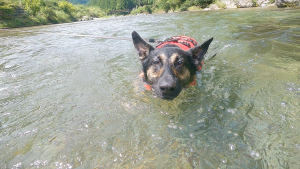 シェパード犬、今年初めての川遊びで大はしゃぎ!