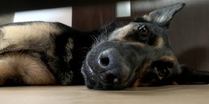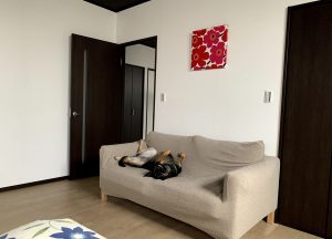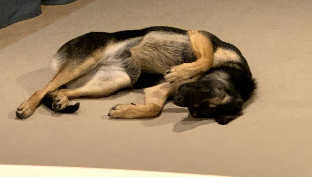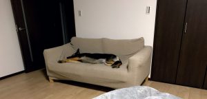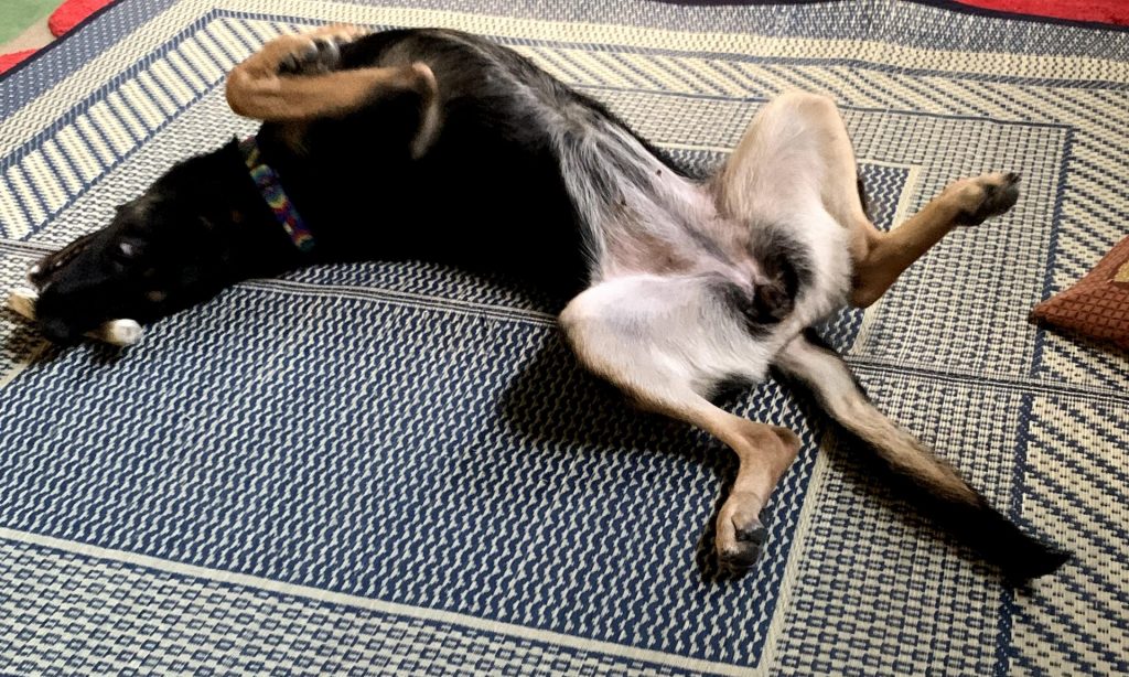 基本的に下腹部の内側を見せつけてくるスタイルで寝る犬